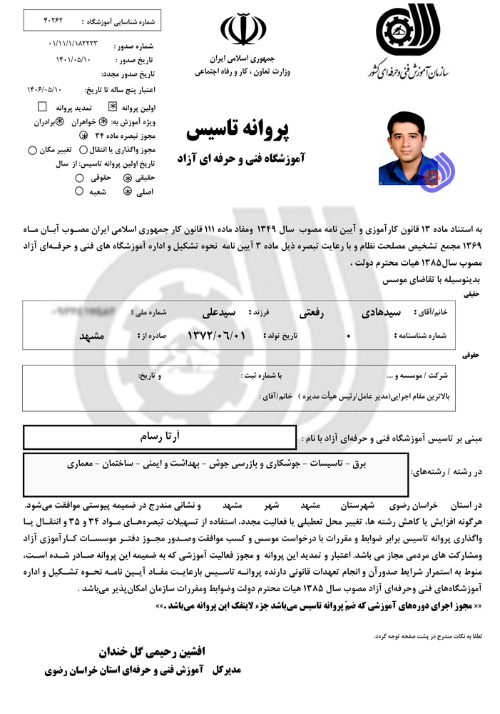 آموزشگاه فنی و حرفه ای آرتا رسّام